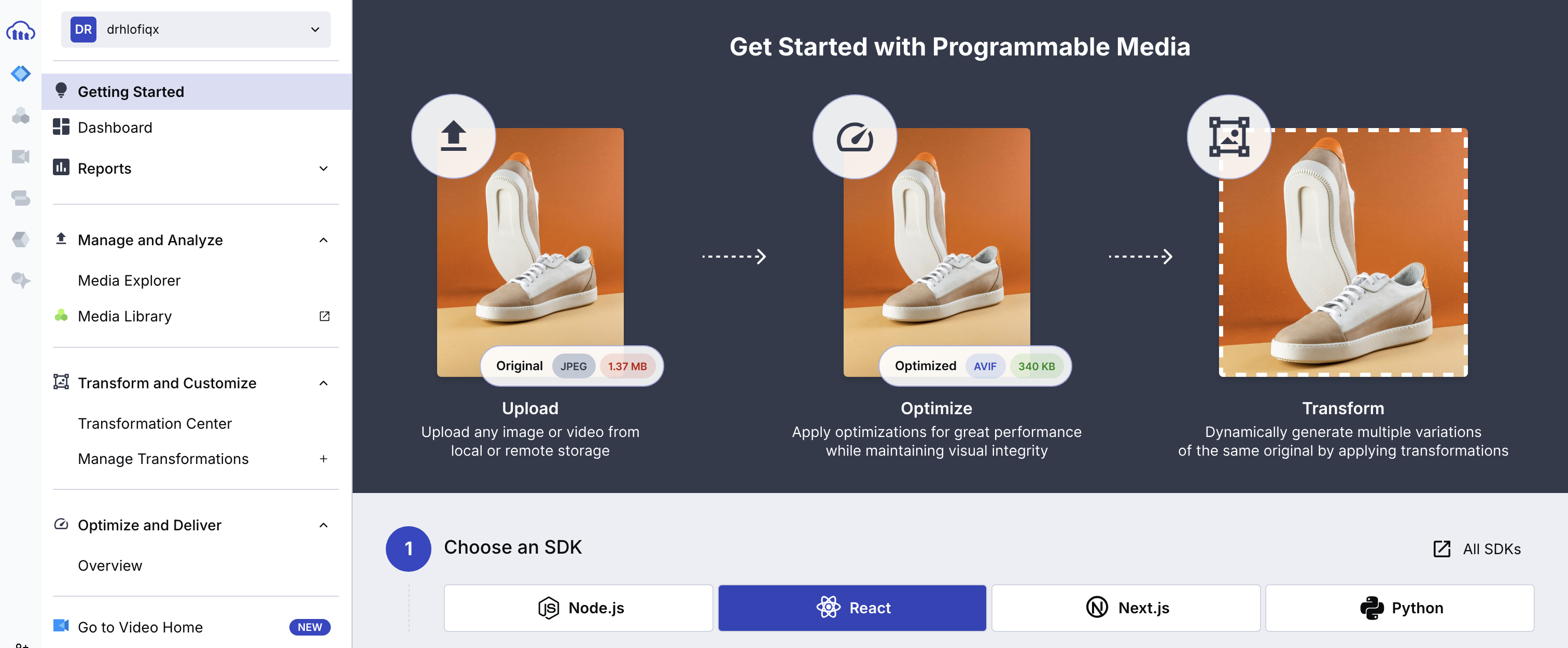 클라우디너리 가입하고 Getting Started 페이지 읽어보기