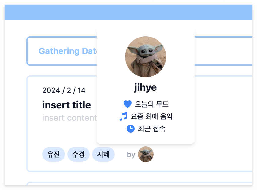 - 오늘의 무드, 요즘 최애 음악, 최근 접속일