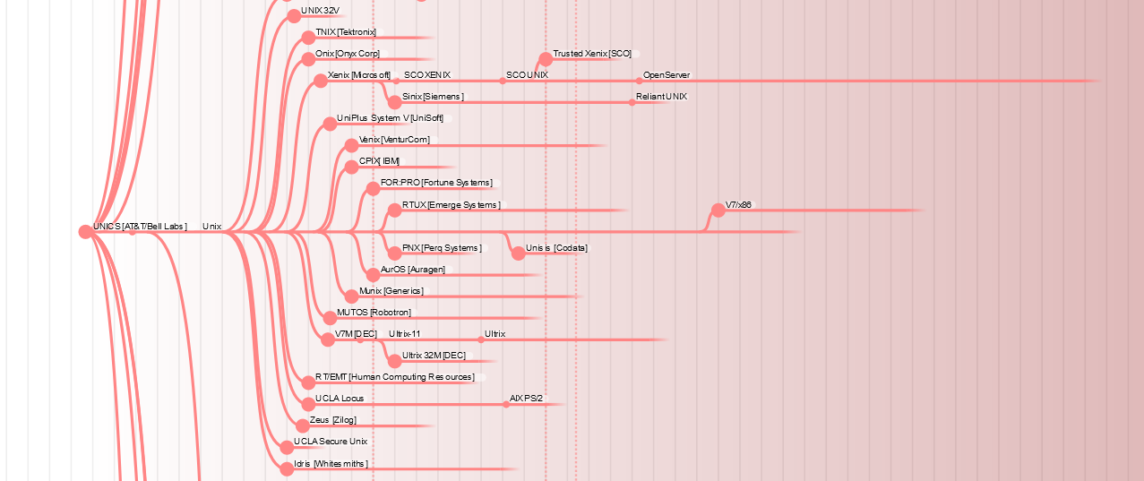 아래 페이지에서 UNIX를 비롯한 수많은 운영체제의 역사와 계열을 족보 형식으로 볼 수 있다.