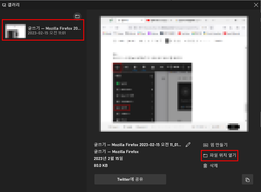 이 위젯을 끄지 않았다면 '내 캡처 보기'를 눌러