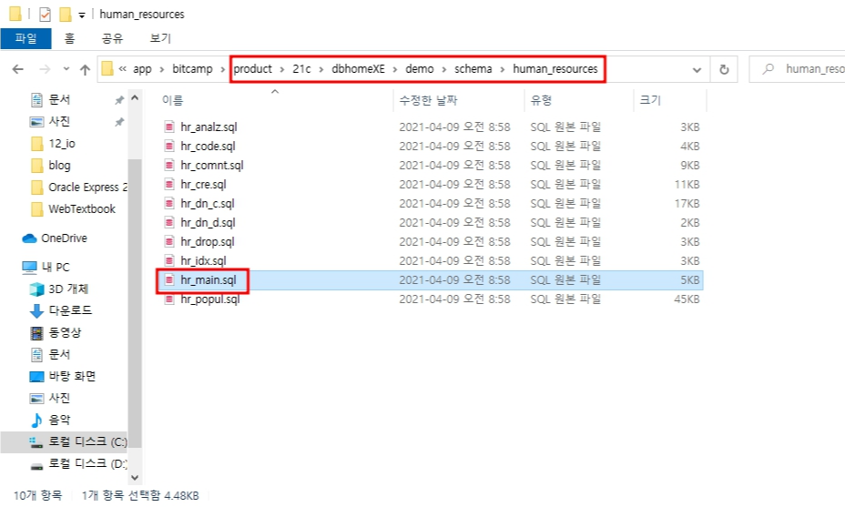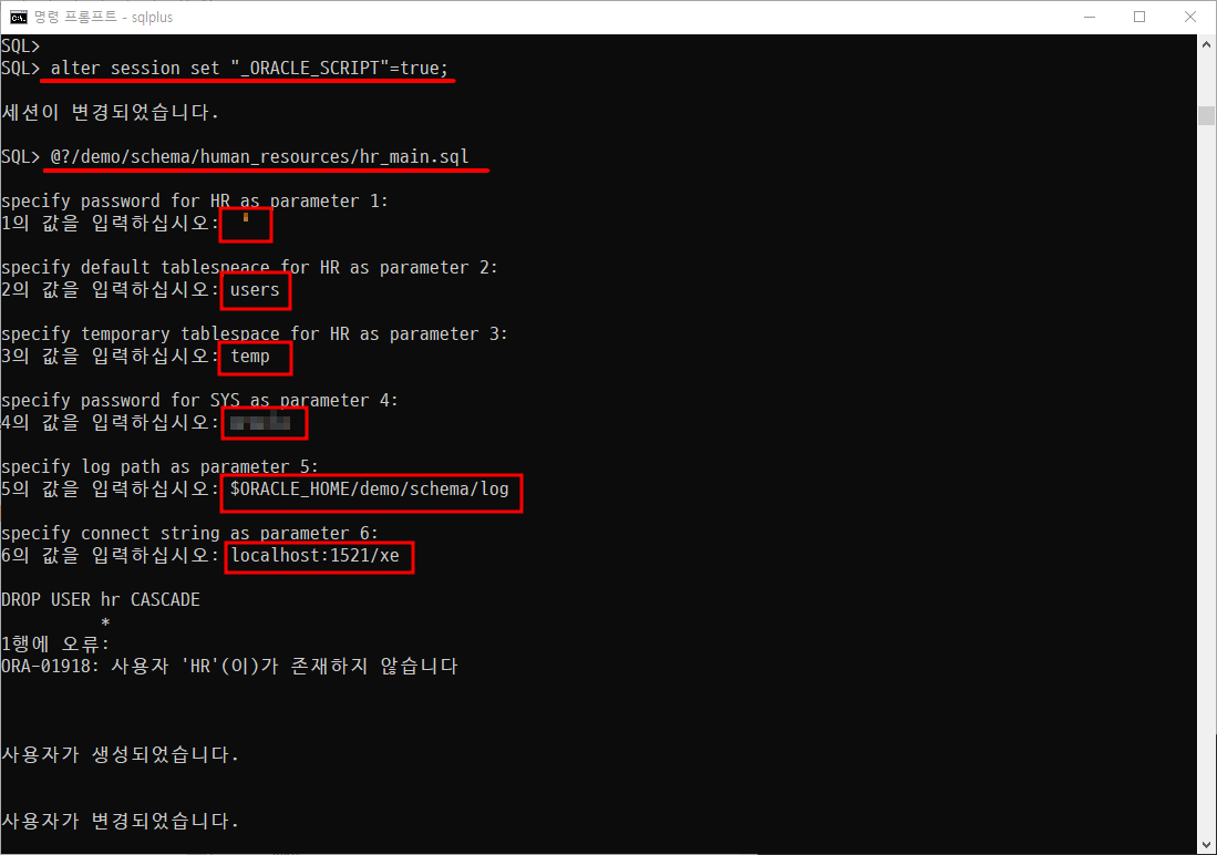 7. hr_main.sql 파일의 경로 입력