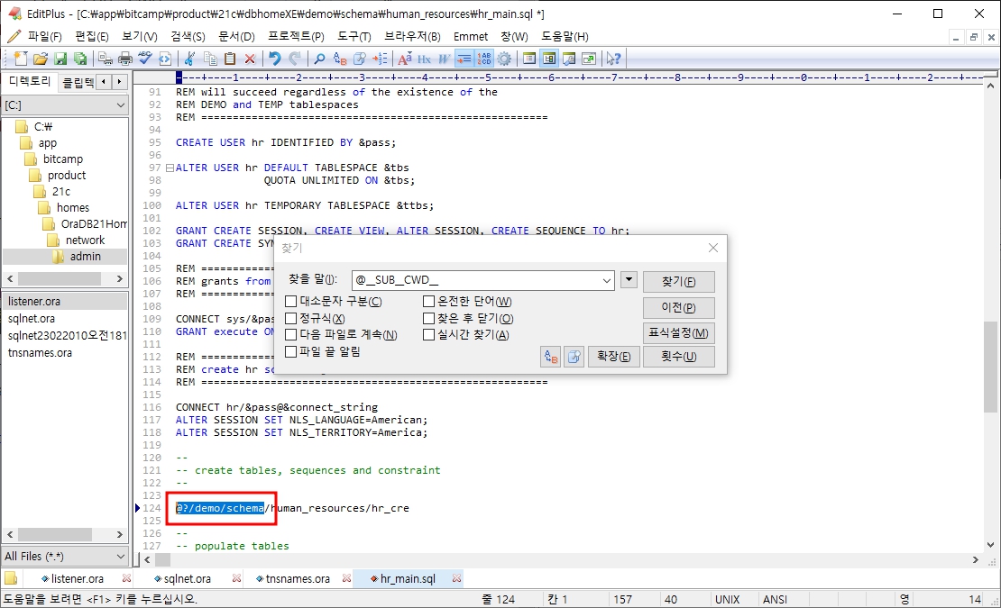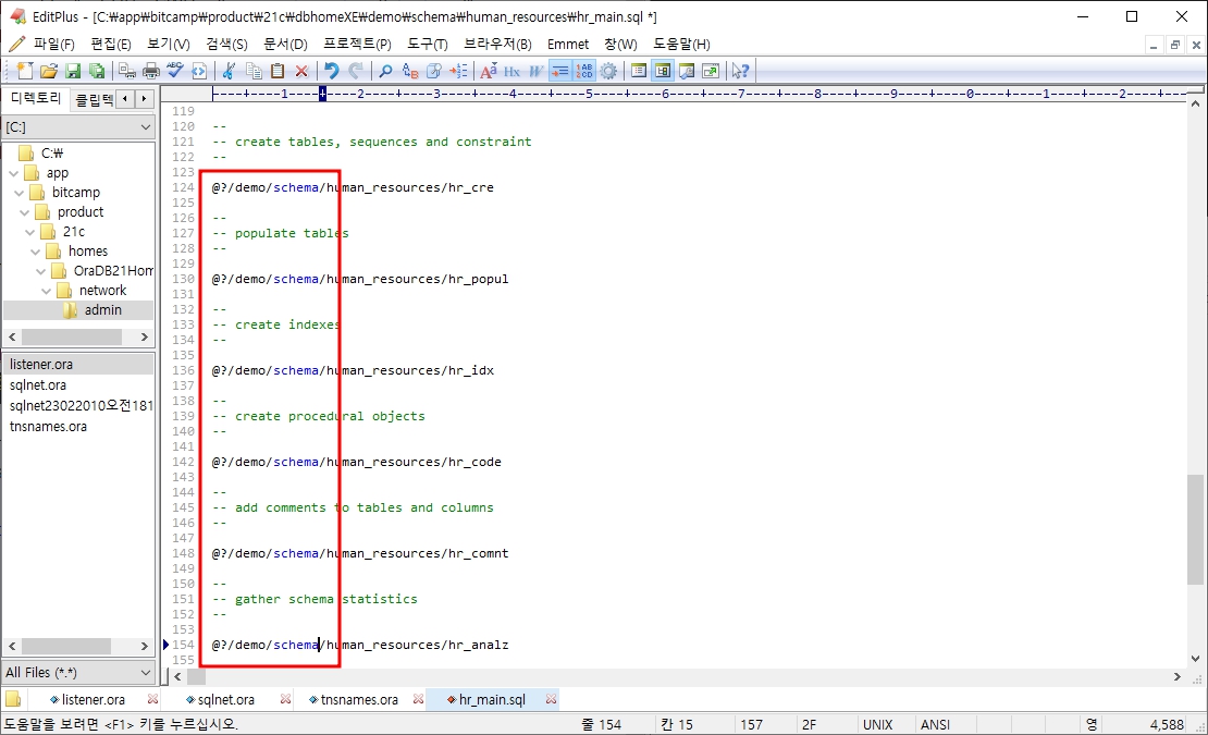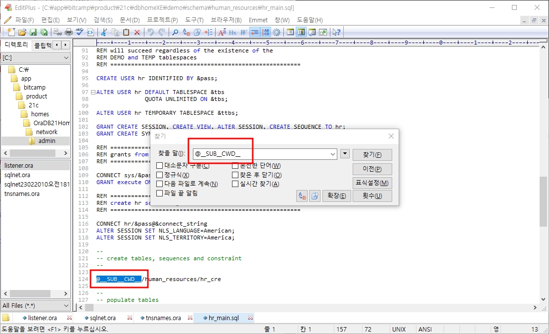 10. hr_main.sql 파일을 열어 현재 디렉토리 경로를 변경해야 한다.