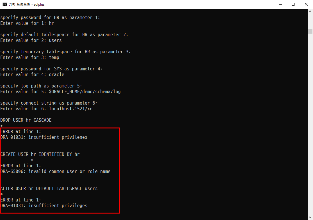 9. ORA-01031: insufficient privileges 에러가 발생할 경우