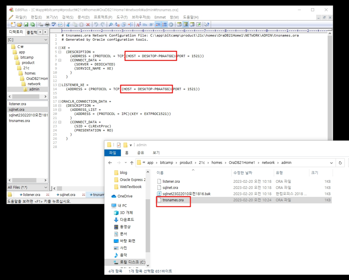 "C:\app\사용자명\product\21c\homes\OraDB21Home1\network\admin" << 여기 안에 있다.