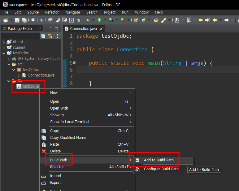 3. ojdbc 파일 우클릭 > Build Path > Add to Build Path