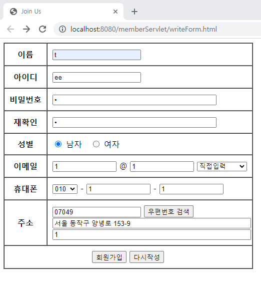다음과 같은 회원가입 창을 만들어 "회원가입" 버튼을 누르면